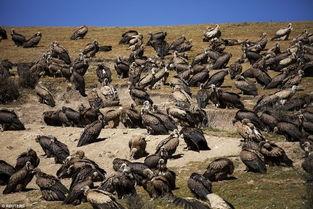2. 秃鹫争食:这幅图片展示了秃鹫争相啄食逝者遗体的场景。它们在空中盘旋,等待着机会。